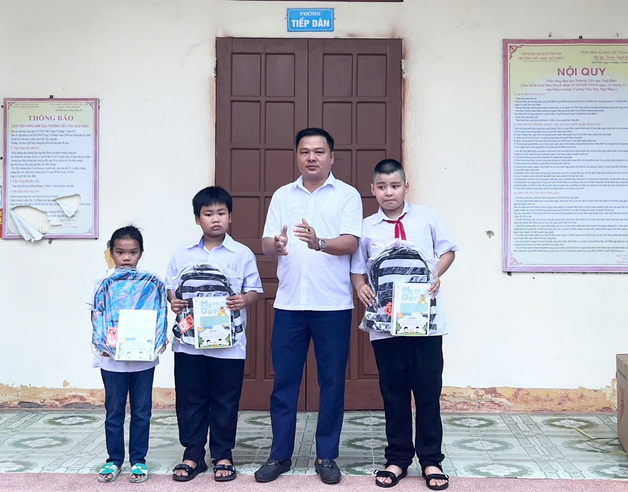 Chương trình tặng quà cho học sinh nghèo vượt khó do Công ty cổ phần Thiết bị trường học Hải Dương trao tặng, mục đích đồng hành cùng các em trên chặng đường học tập năm học 2025 - 2026.  Chương trình gồm 7 xuất quà cho 7 học sinh nghèo vượt khó trường Tiểu học Ngũ Phúc, mỗi xuất quà gồm: 1 Ba lô và 1 xúc vở Kalong cụ thể các em học sinh có tên sau: